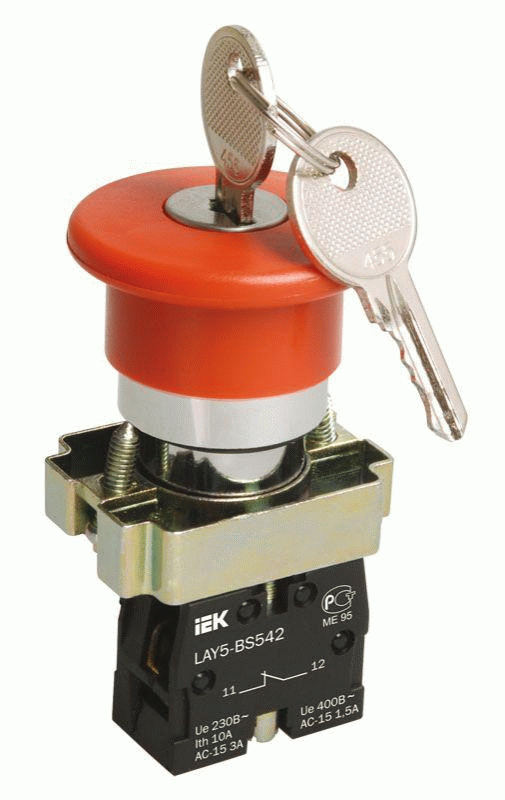 Кнопка LAY5-BS142 "Грибок" d22мм 1р 240В с ключом красн. IEK BBG50-LAY5-K04