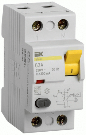 Выключатель дифференциального тока (УЗО) 2п 63А 300мА тип AC ВД1-63 IEK MDV10-2-063-300