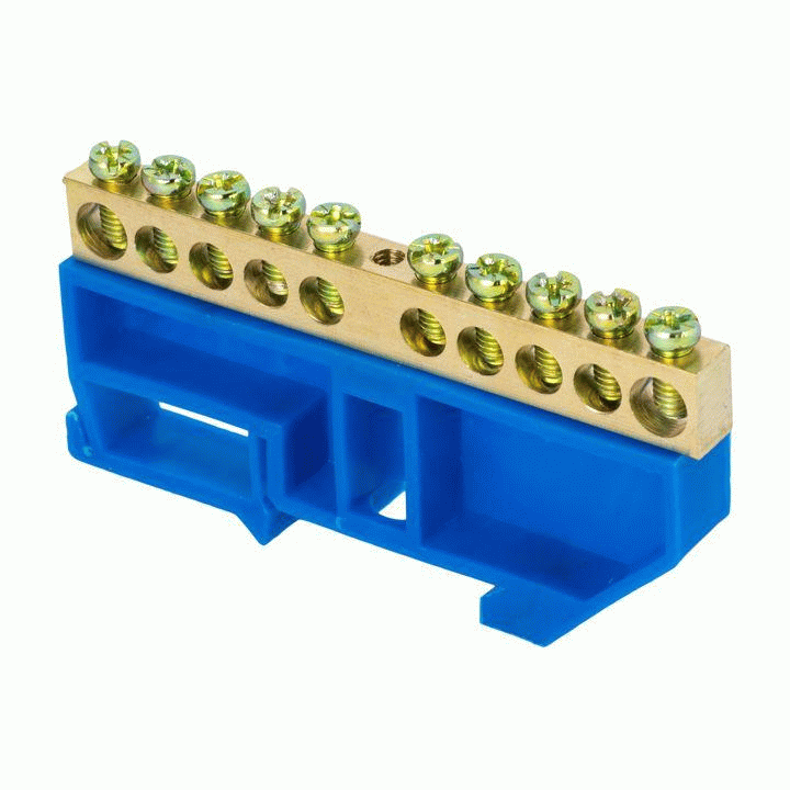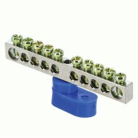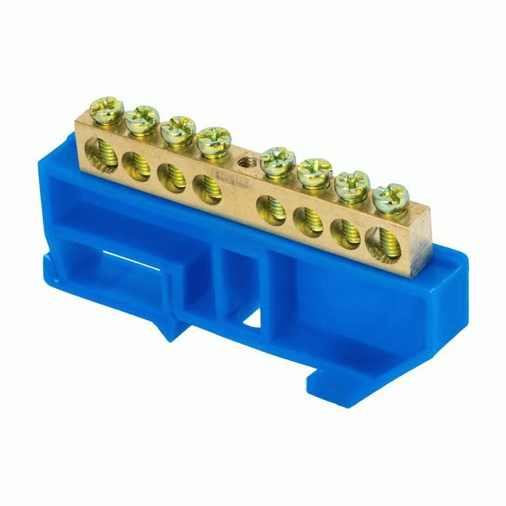Шина нулевая N 6х9 10 отвер. латунь син. изолятор на DIN-рейку PROxima EKF sn0-63-10-d