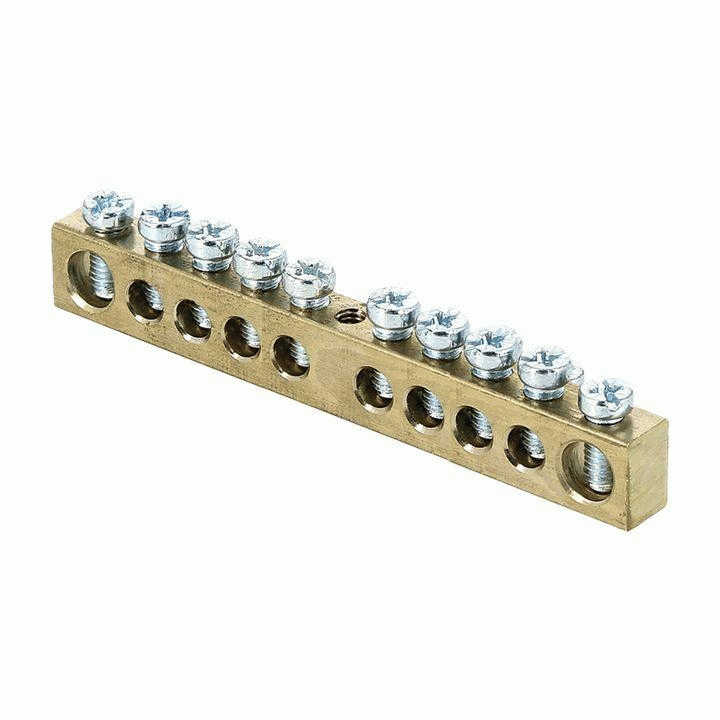 Шина PEN "ноль-земля" 6х9 10 отвер. латунь крепеж по центру PROxima EKF sn0-63-10