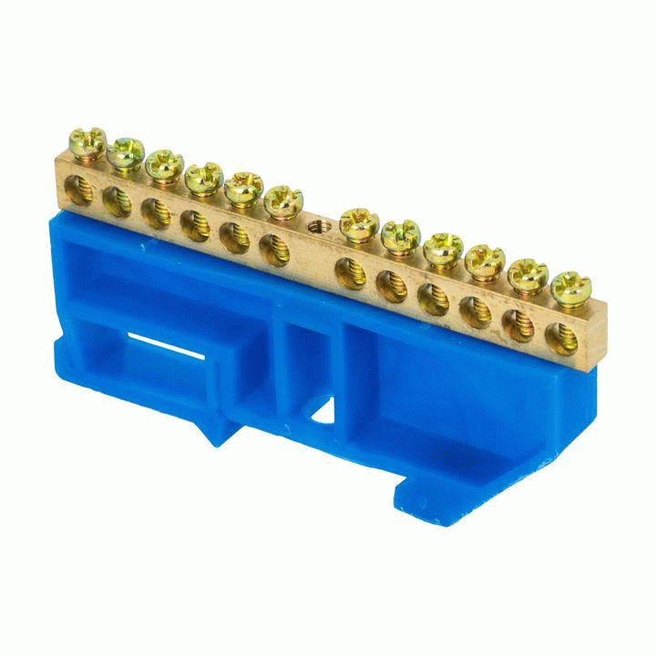 Шина нулевая N 6х9 12 отвер. латунь син. нейлоновый корпус комбинированный PROxima EKF sn0-63-12-dn
