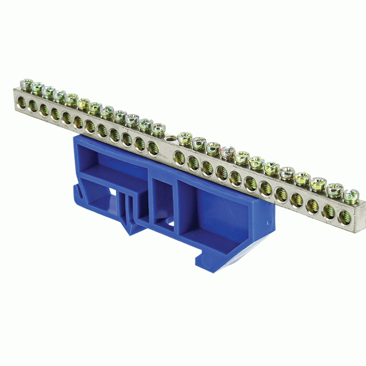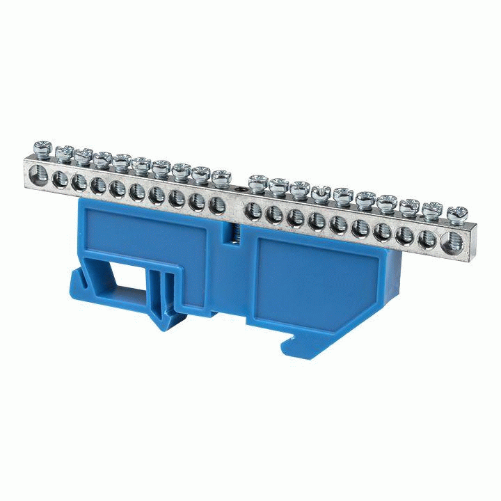 Шина нулевая N 6х9 20 отверст. цинк син. изолятор на DIN-рейку PROxima EKF sn1-63-20-d