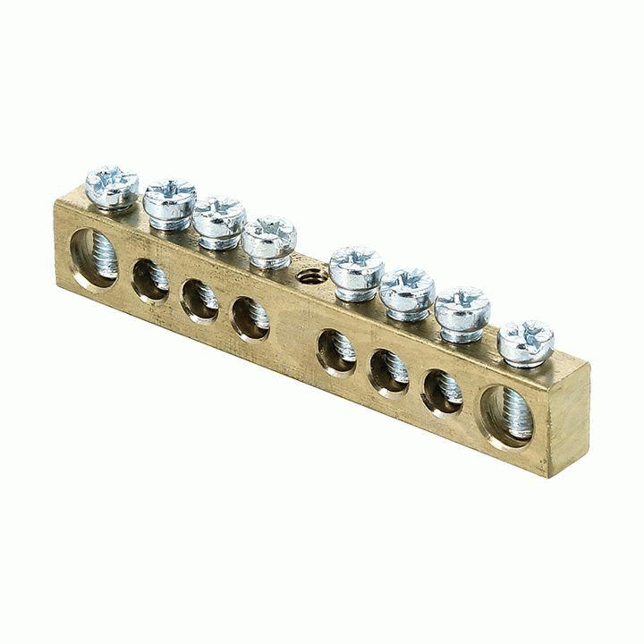 Шина PEN "ноль-земля" 6х9 8 отвер. латунь крепеж по центру PROxima EKF sn0-63-08