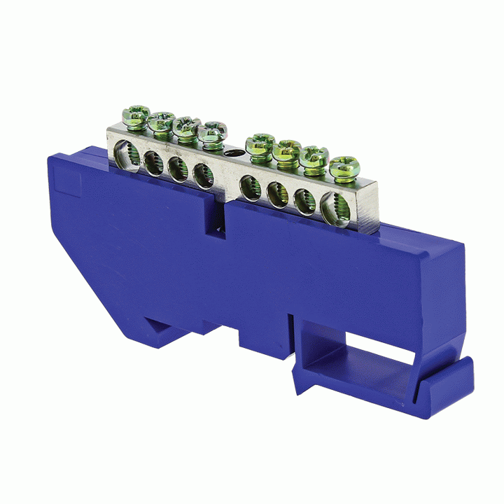 Шина нулевая N 6х9 8 отвер. латунь син. изолятор на DIN-рейку PROxima EKF sn0-63-08-d