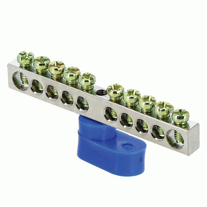 Шина нулевая N 6х9 10 отверст. цинк син. угловой изолятор PROxima EKF sn1-63-10-1