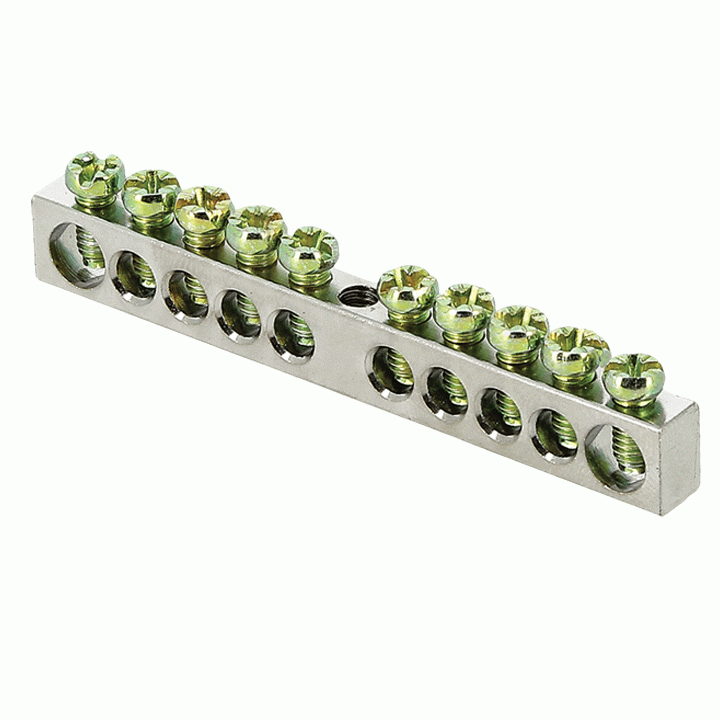Шина PEN "ноль-земля" 6х9 10 отверст. цинк крепеж по центру PROxima EKF sn1-63-10