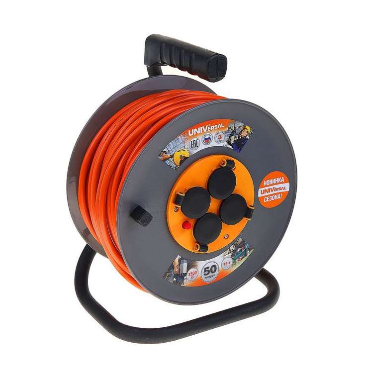 Удлинитель на катушке 4х50м с заземл. 16А IP44 ВЕМ-250 ПВС 3х1.5 термозащита с защ. крышкой UNIVersal 9634176