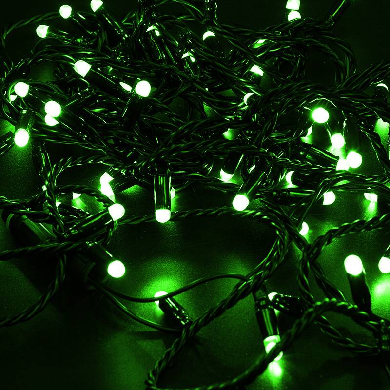 Гирлянда Нить 10м, постоянное свечение, черный ПВХ, 230В, цвет Зелёный