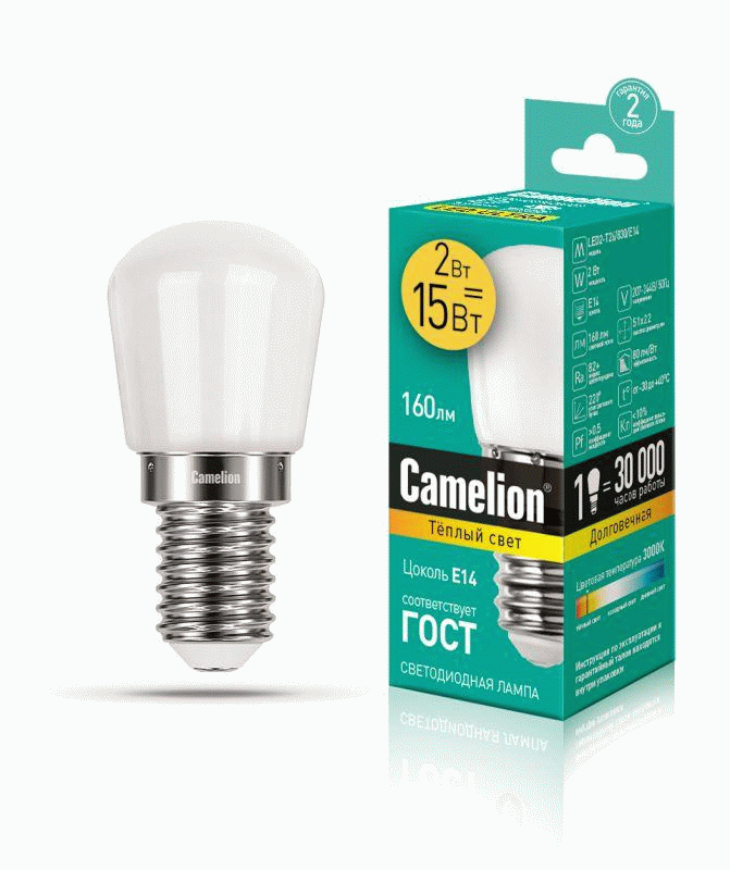 Лампа светодиодная LED2-T26/830/E14 2Вт 220В Camelion 13153