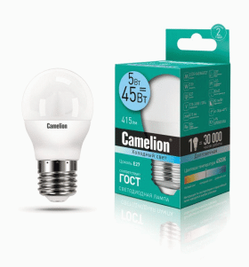 Лампа светодиодная LED5-G45/845/E27 5Вт шар 4500К бел. E27 405лм 220-240В Camelion 12030