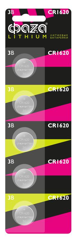 Элемент питания литиевый CR1620 3В BL-5 (блист.5шт) ФАZА 5027947
