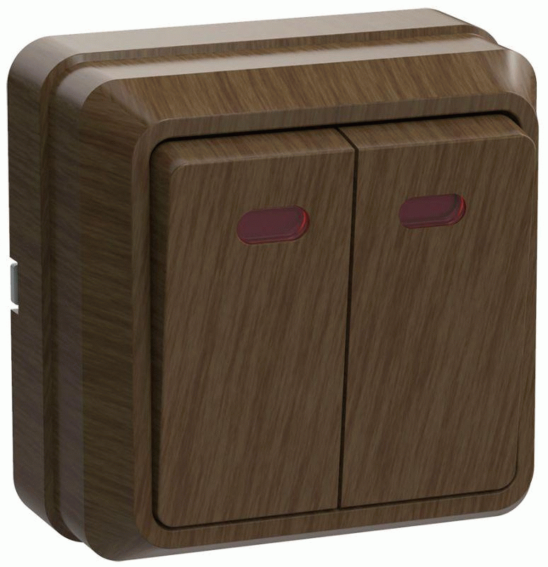 Выключатель 2-кл. ОП Октава 10А IP20 ВС20-2-1-ОД с индикацией дуб IEK EVO21-K04-10-DC